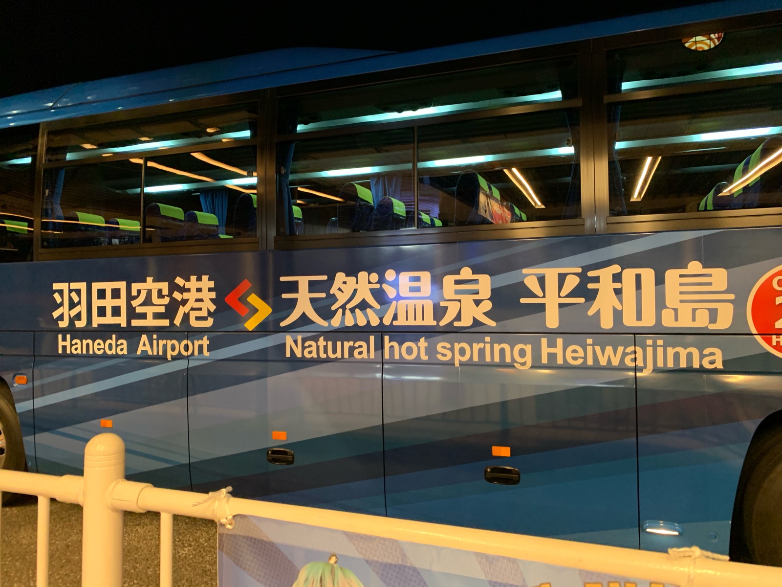 当日、会社にスーツケースを持参し、京急線平和島駅からワンコインバスで天然温泉平和島に直行!