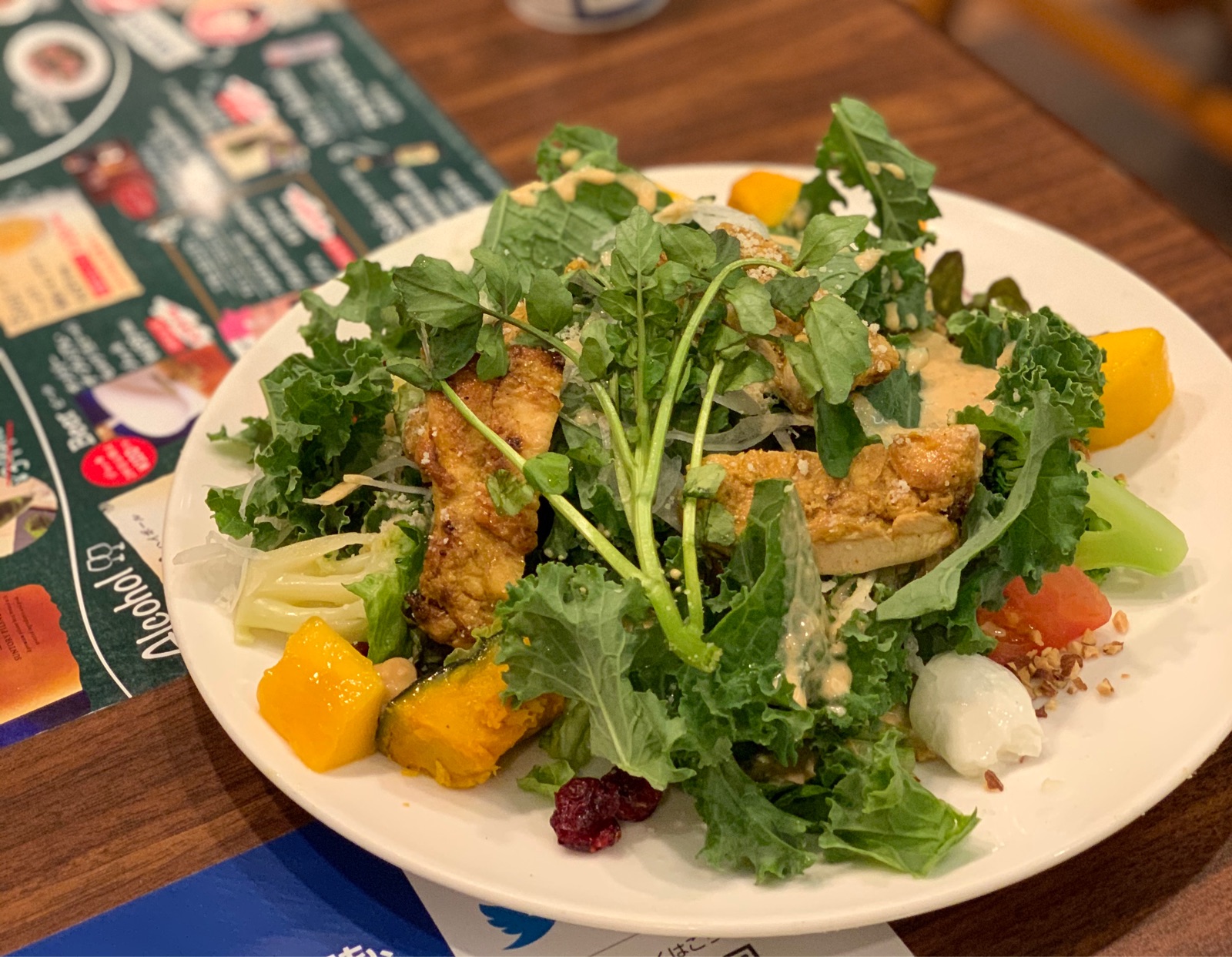早く寝る予定だから軽めにビッグサイズのケールサラダね。