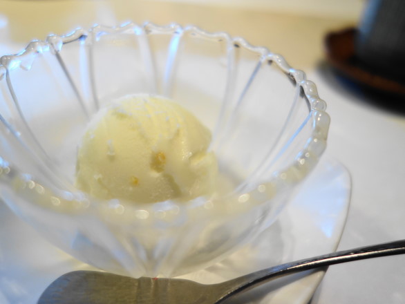 羊ちゃん、次のオシゴトが決まったら初めてのお給料で串揚げをごちそうして、応援ありがとうの感謝のキモチを表したいね!ねっ!と、言い聞かせながらサッパリ柚子ソルベ。