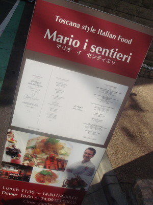 マリオ イ センティエリでイタリアンハンバーガーを楽しむ会 週末、西麻布のマリオ イ センティエリで開催された イタリアンハンバーガーを楽しむ会に参加してまいりましたー。 このイベント、スイーツ番長さまの主催でございました。 ウキウキ気分でお店へ向かいます。 西麻布の交差点裏の細い通りにマリオさんのお店がありました 2009年09月28日