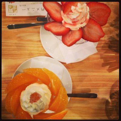 2014年パフェ初めは、ゴトーさん。 イチゴパフェと紅まどんなのパフェ。 普段は選ぶことのない柑橘系だけれど、 紅まどんな、ものすごーく甘くて美味しゅうございました お店のおかーさん曰く、 「本当は紅まどんなのパフェは、12月いっぱいかと思ったけど、 たくさん買っ