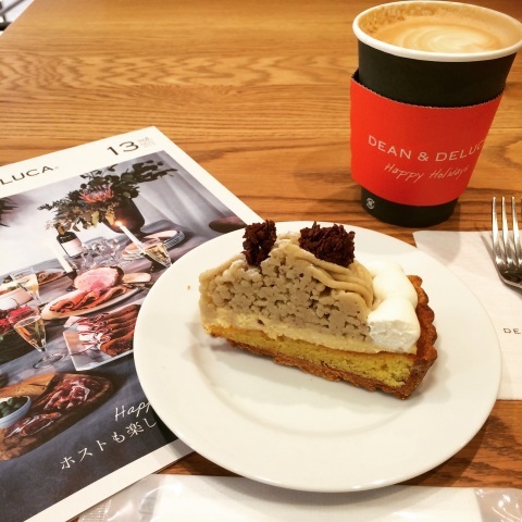アラボンヌーの和栗のタルト @有楽町ルミネDEAN&DELUCA 明日からスタートのルミネカード10%おっふー♪の下見の後、和栗タルトを食べつつ、ひとりお買い物相談会。つい先日までオレンジ色のハロウィン祭りだったDEAN&DELUCAはすっかりクリスマス仕様。店頭で配布しているフリーペーパーの特集は、ホストも楽しむ楽しむクリスマスパ 2015年11月12日