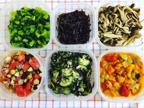 まだまだ暑さに身体が慣れないので、今週は火を使う時間が少なく作れる常備菜。小松菜の塩炒り、きくらげの佃煮風、しめじの酒炒りミックスビーントマトマリネ、ズッキーニとヒジキの黒ごまナムル、ラタトゥイユ。小松菜は、茹でずに塩炒りにするのがすっかり定番。この方が