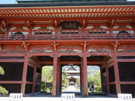 春の大人遠足 勝沼&石和Vol.7から続いてまーす。石和温泉駅にワインコーナーがあったので、ちょっと寄りたかったのだけれど30分に1本の電車の時間が迫っていたので涙を飲んでスルー。石和温泉駅から酒折駅まで移動し、15分ほどてくてく移動。やってきたのは甲斐善光寺。す