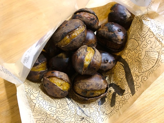 おいしい焼き栗 そろそろ栗のシーズンもおしまい。毎年、銀座三越で販売されている焼き栗を今年はまだ食べていなかったことに気が付いた。気づいてしまったら、居ても立っても居られず、昨日の会社帰りにお買物。時期によって違うのだけれど、この時は、茨城県の志士庫村の栗。 2020年11月28日