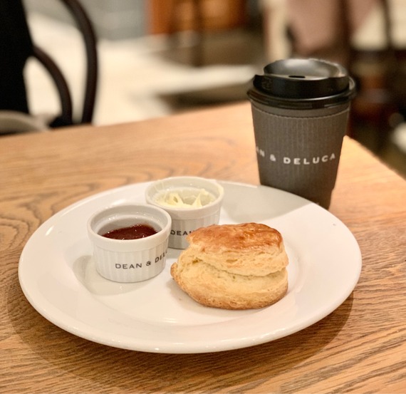 DEAN&DELUCAでスコーンセット 先週の仕事納めでDEAN&DELUCAに立ち寄った際春らしい新商品と一緒に並んでいたスコーンをイートインで。D&Dのスコーン、好きなのよ~。 2022年03月16日