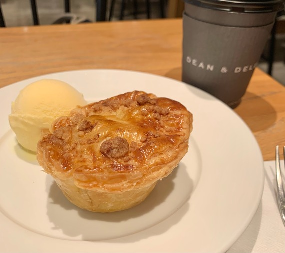 DEAN&DELUCAの丸ごとピーチパイ 週末、パンを買いにDEAN&DELUCAに行ったところお!丸ごとピーチパイですって!しかも、イートインすると100円プラスでバニラアイス付きですと!それじゃ、食べていくしかないわね。 2022年08月22日