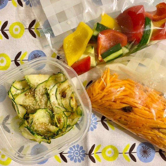 火を使わない常備菜とコンパクトに収納できるスライサー 料理する気が限りなーくゼロに近くなる暑い夏。一応、明日の自分のために!と火を使わない常備菜を何点か。キャロットラペ、ピクルス、ズッキーニのナムル。あんまり頑張って作ると食べ切り使命感が強すぎるのでゆるっとこの程度の量がちょうどいい。 2022年08月09日
