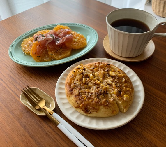 今日の朝ごぱんと大物買いとラスト5時間セール! 昼間は暑かったけれど、日が暮れたらすっかり涼しくなって秋らしい感じ。「暑い~」と、感じるのもあと1週間ぐらいかしらね。今日の朝ごぱんはオレンジのサラダとコーンたっぷりのフォカッチャ。 2022年09月10日