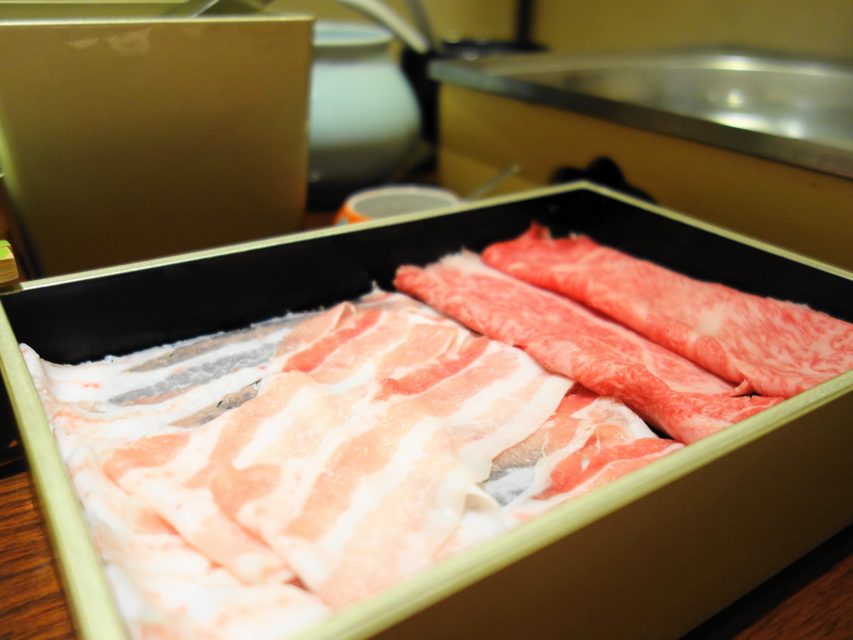 近江牛とバームクーヘン豚の両方がいただけるなんて、肉らー的には夢の共演しゃぶしゃぶ!