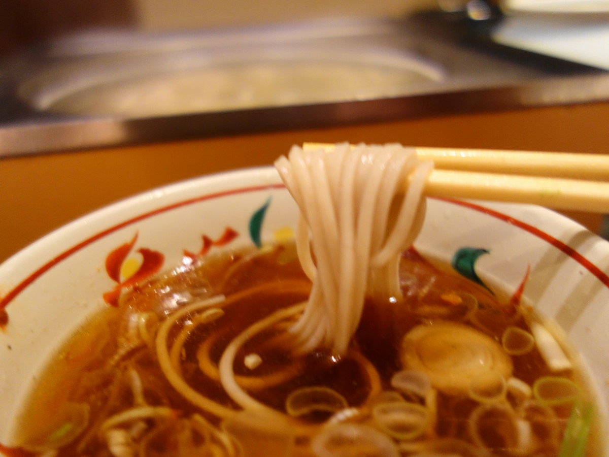〆は、乾麺の状態から茹でる近江蕎麦。