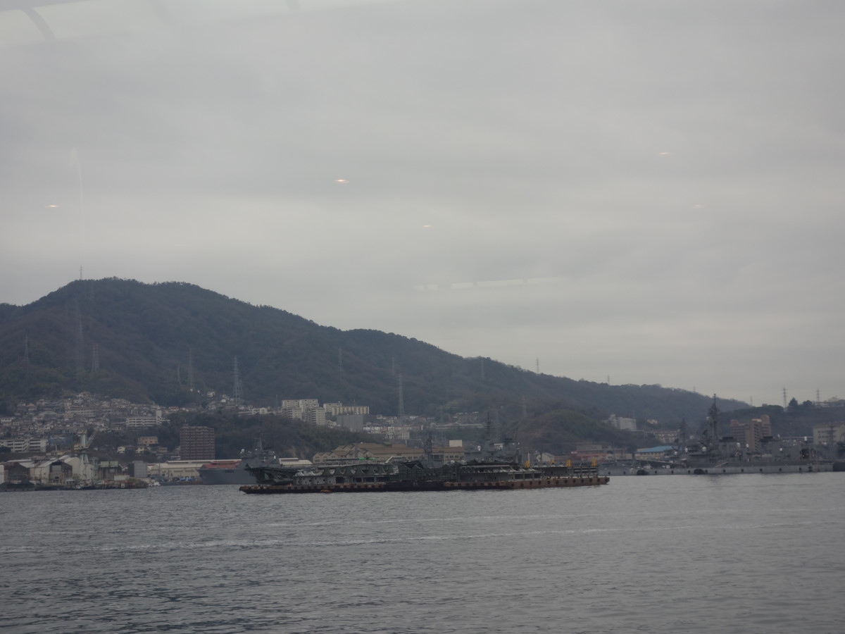 本当は夕焼けと船の上から軍艦めぐりを楽しめる夕方出港の呉軍艦めぐり夕呉クルーズに参加したかったのだけれど、無念の曇天。