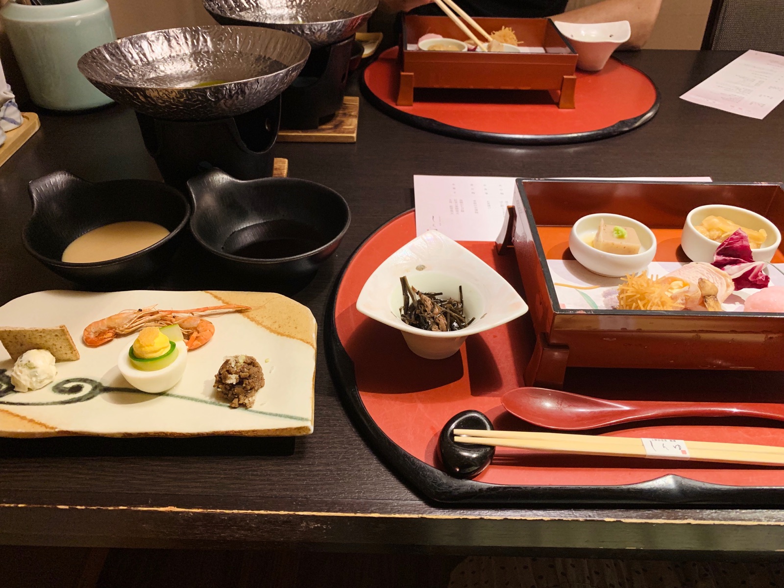 毬栗真薯、市田柿クリームチーズサンド、信州ハーブ鶏と松茸、道明寺饅頭