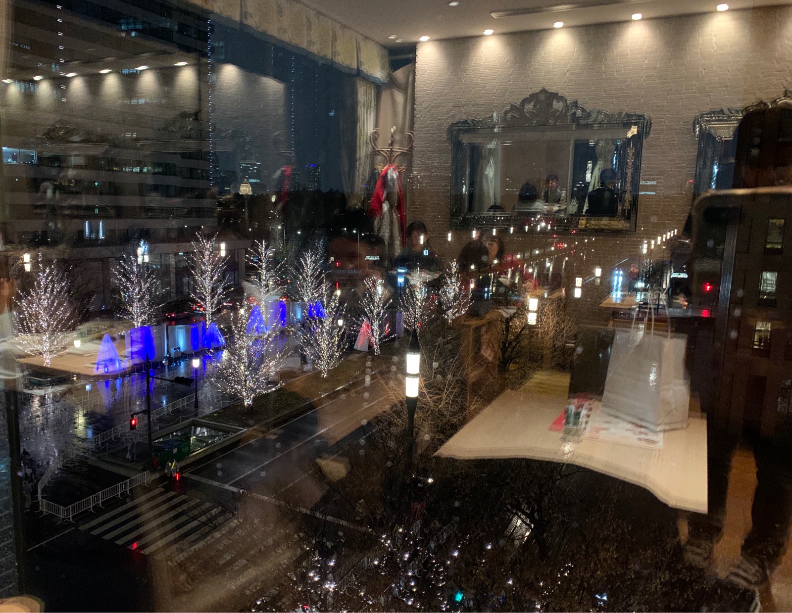 ガラス越しには丸の内のイルミネーション。