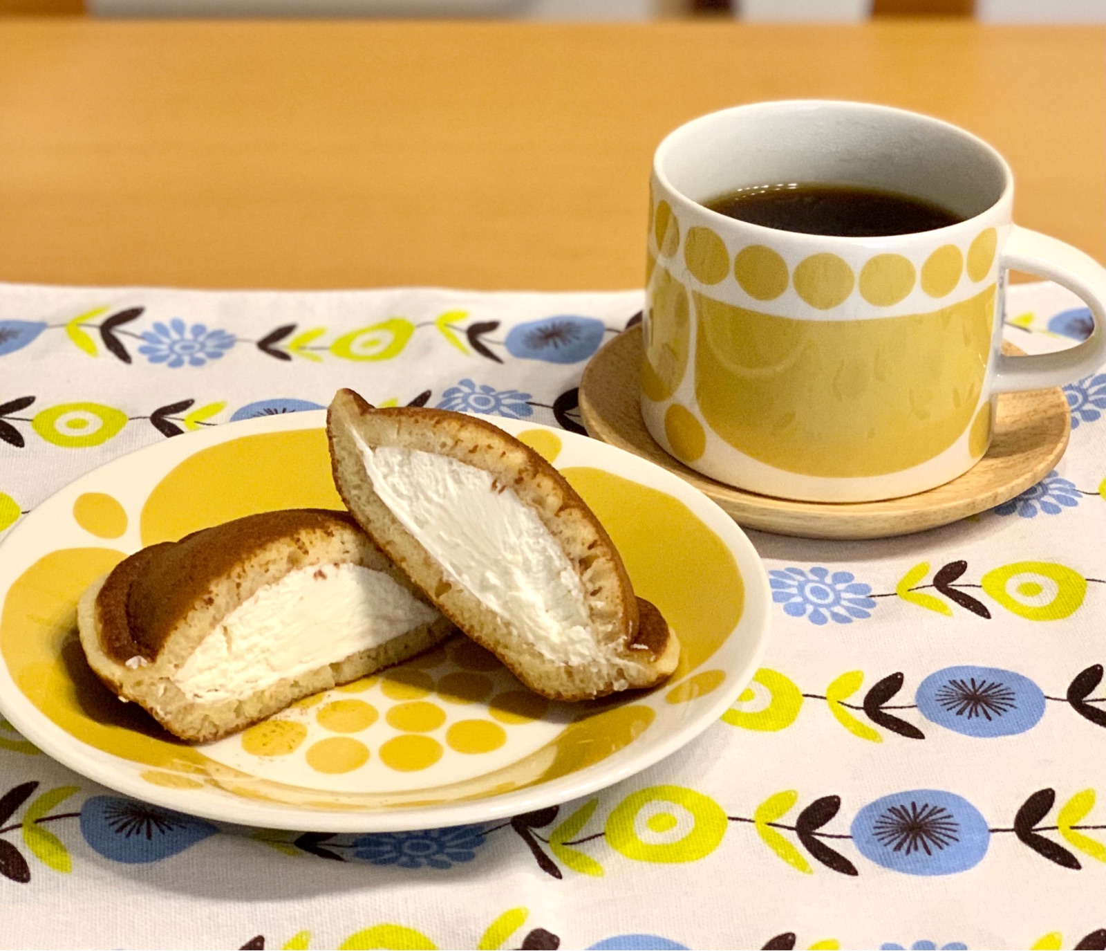 甘そうなのでビターなコーヒーを用意。