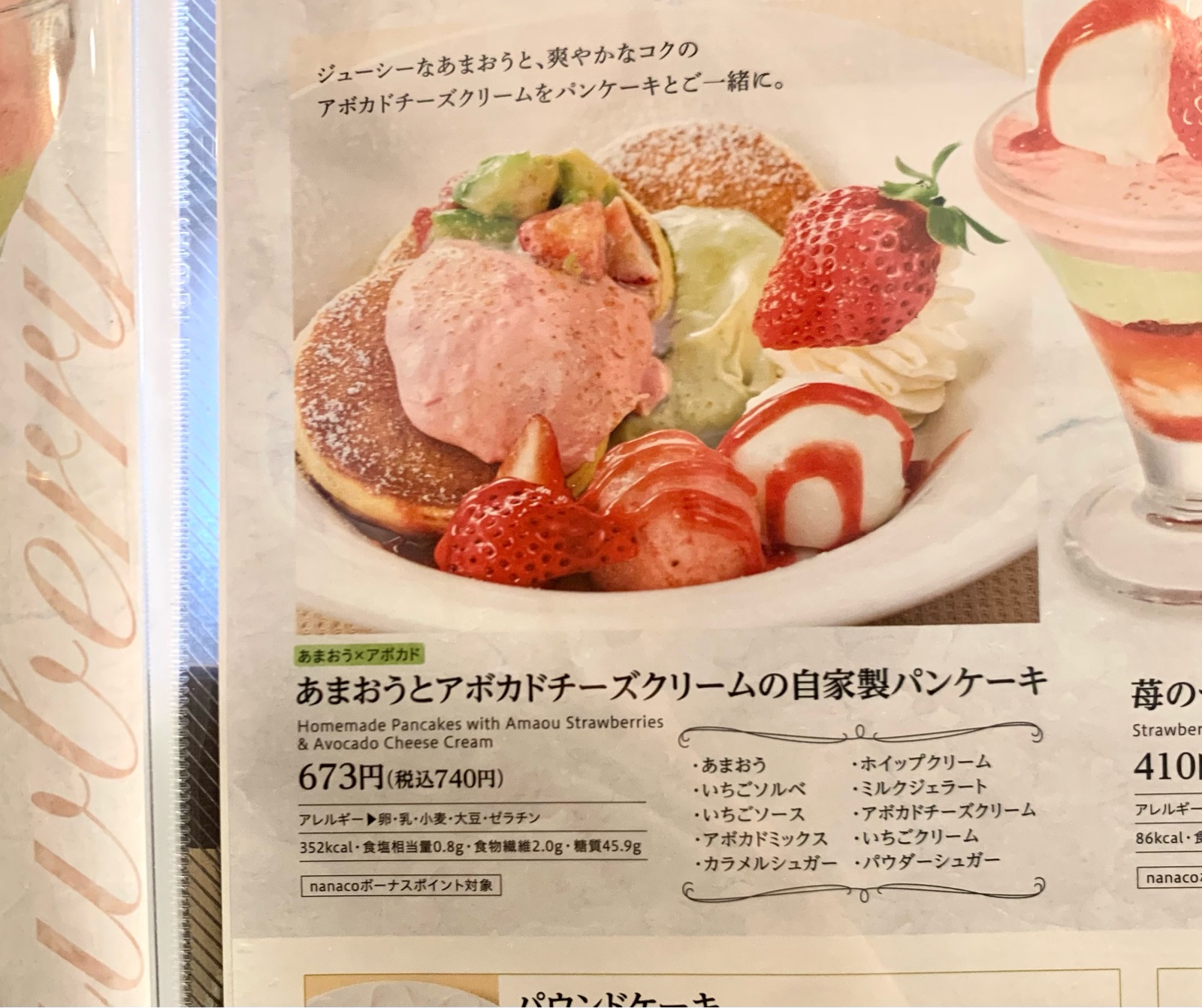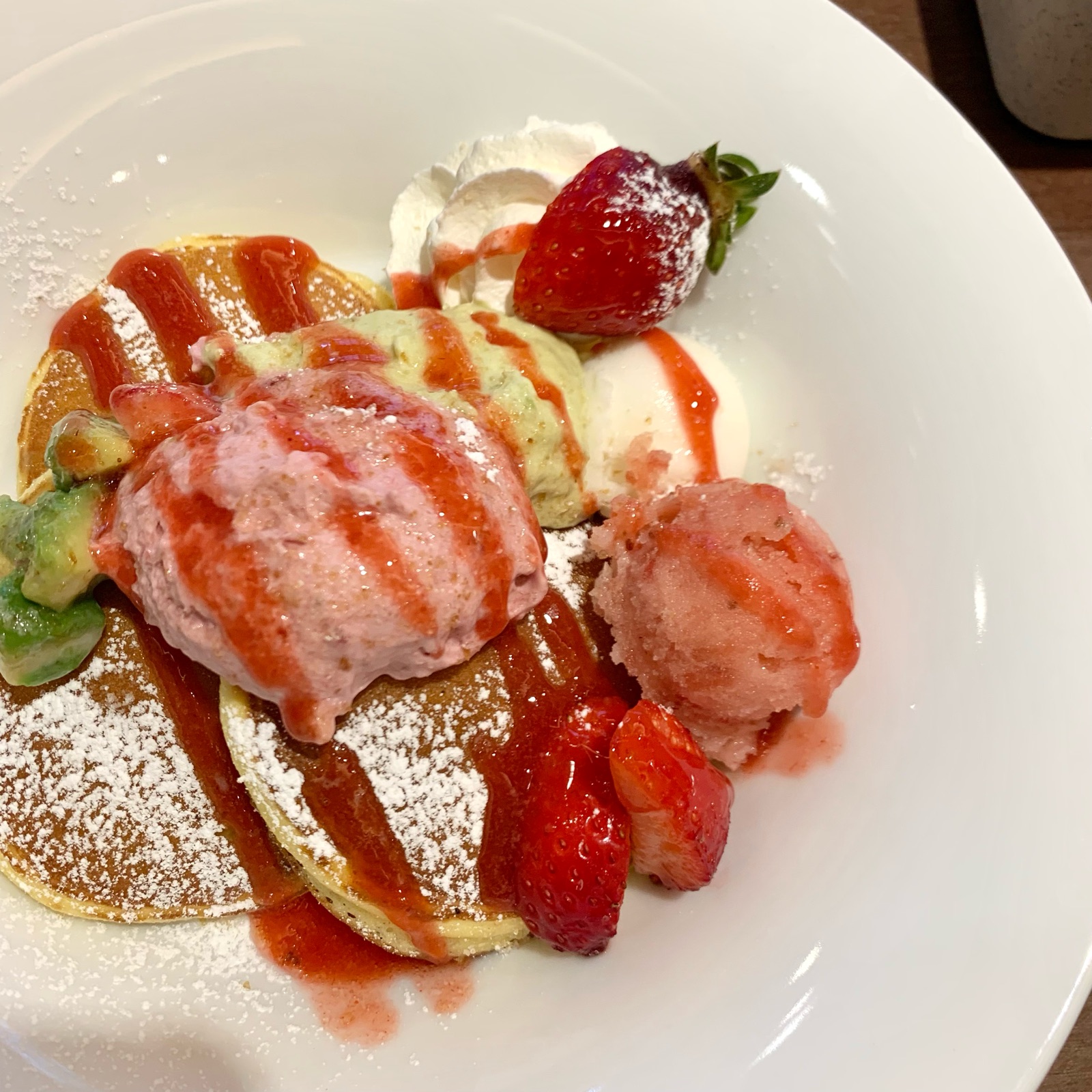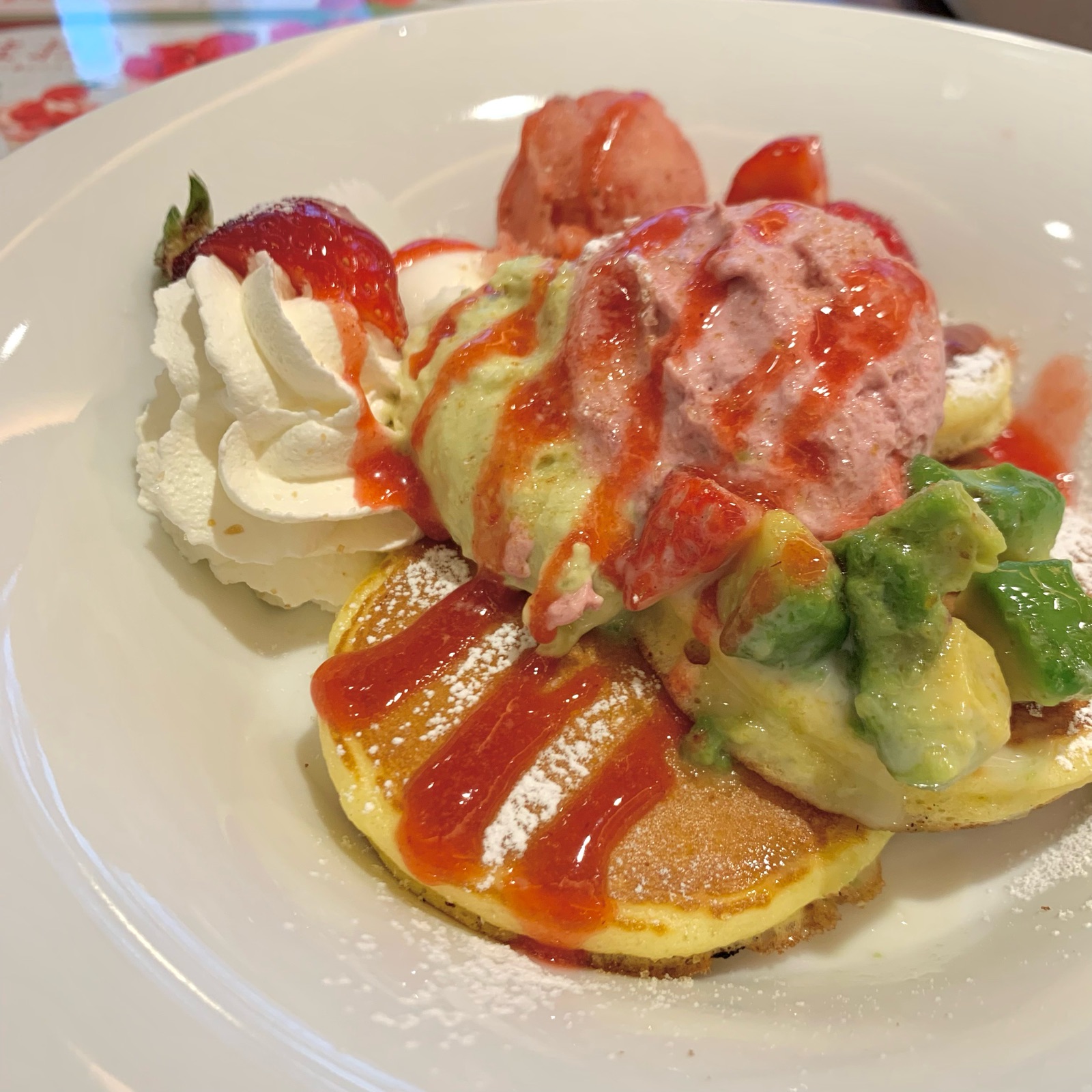 あまおうとアボカドチーズクリームの自家製パンケーキ