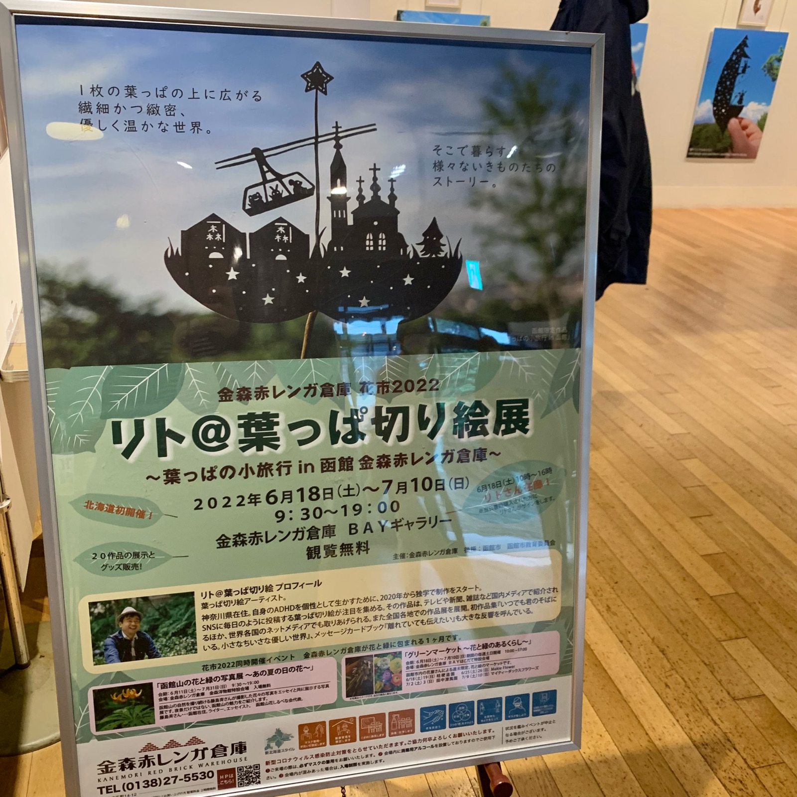 葉っぱアートのリトさんの展示、