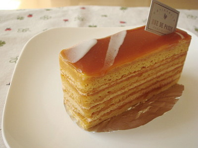 キャラメラーなおふたりが絶賛なさっていた、キャラメルケーキ。薄いビスキュイ生地にゲランドの塩を使ったキャラメルクリーム。