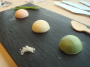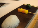 3種類の「豆腐」は春菊・ライム・桜。