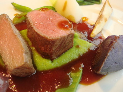 お肉は仔羊背肉のロースト ナヴァラン風 グリーンピースのピューレと季節野菜添え