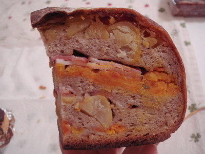 酸味のある生地にくり、かぼちゃ、ベーコン、チーズが、