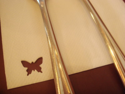 紙ナプキンにカワイイパンチング。おっ、これは、我が家のオモテナシの時にも使える小技だわ。