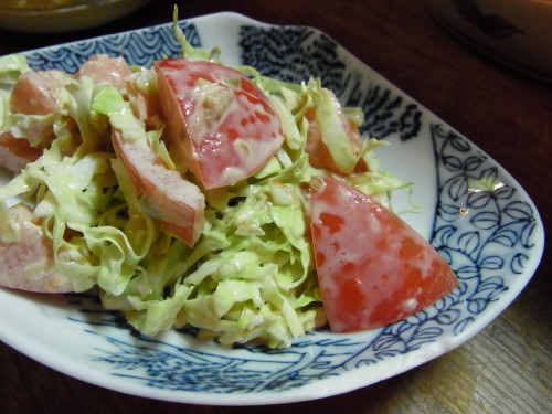 パッと見、フツーのキャベツとトマトのサラダなんだけど、