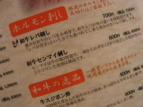 とりあえず、レバ刺し、ちょうだいっ!