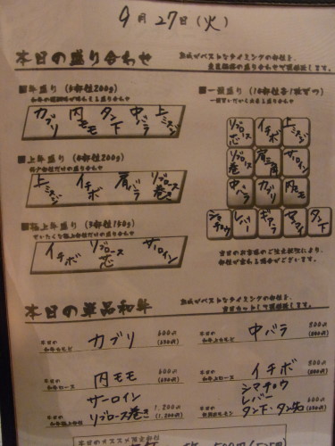 通常メニューに添えられた本日のお品書きは、こんな感じ。