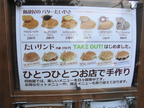 テイクアウトもオッケーなたい焼きメニューは、こんな感じ。