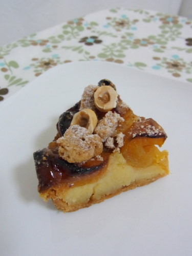 アプリコットのタルトにヘーゼルナッツをあしらったもの。