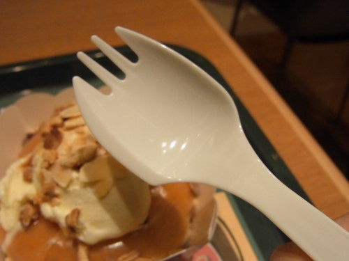 添えられた先割れスプーンは、ドーナツがカットしやすいようになってるのね。