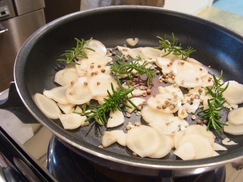 鍋にはハーブ類を。