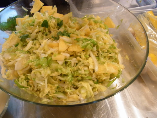 付け合せのコールスローにはパイナップルをプラス。