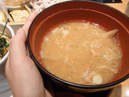 豚肉の代わりに蒸篭全てお野菜の豚汁セットは980円。黒豚セット1050円。