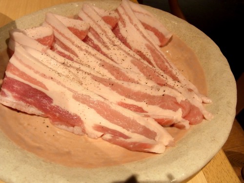 はるはるでは、普通のサムギョプサルと焼きキムチと一緒バージョンを