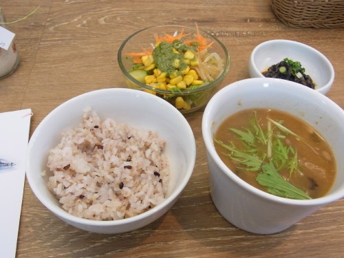 日替わりスープとごはん、サラダ、小鉢で通常価格は@880