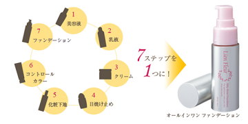 こちらのリアンフルール シルキー モイスト ファンデーションは、1本で7役のオールインワンファンデーション!