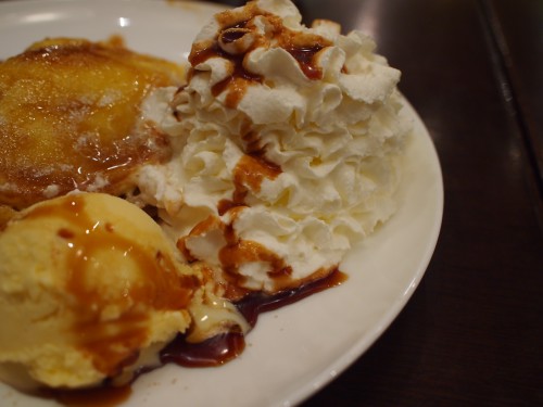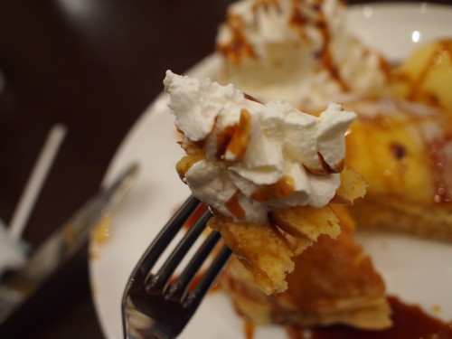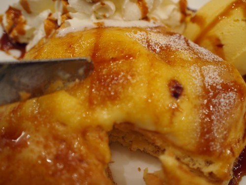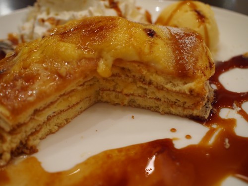 ほらほら、パンケーキの上にはたっぷりブリュレ。