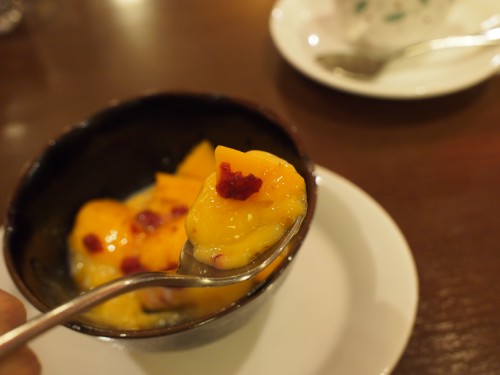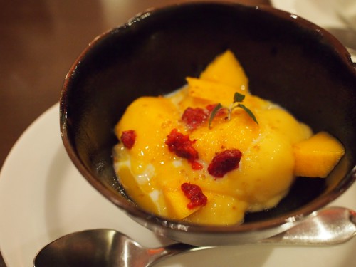 マンゴープリン、マンゴーソース、フレッシュマンゴーとマンゴー尽くしの中に