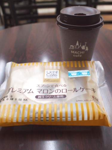 Pontaカード特典でコーヒーが割引されるので、ロールケーキと一緒で@360!