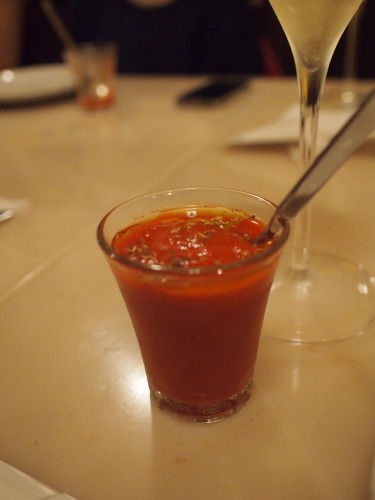 まずは、トマトの甘みぎゅっぎゅっと詰まったガスパッチョ。