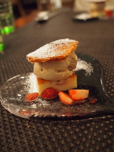 デザートはイチゴのアイスと、、、謎のケーキ(笑)