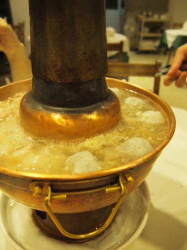 そして、こちらが小鍋。白菜漬けとエビ団子はすでにイン!