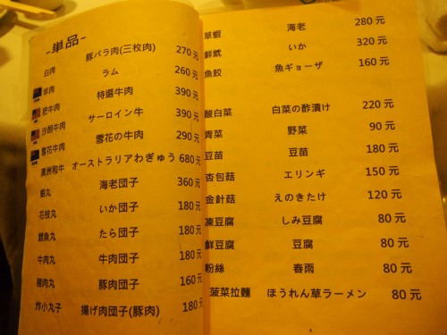 こちらでは、酸菜という白菜の酢漬けを使った鍋をいただくわー!メニューは日本語表記なので安心。