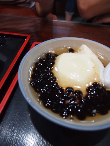 チュルルンとした確かにお豆腐。それに甘い蜜とモチモチタピオカ。