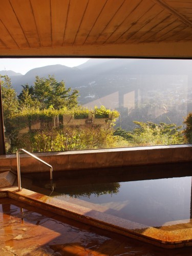 露天じゃないけど、眺めはサイコー!お風呂から上がって、軽くお夕寝していたら、日が暮れ始めておりました。