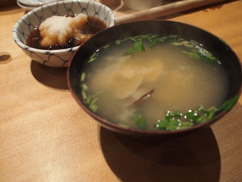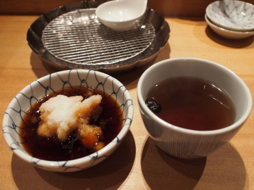 正しい食べ方指南に沿ってお醤油をチラリ。