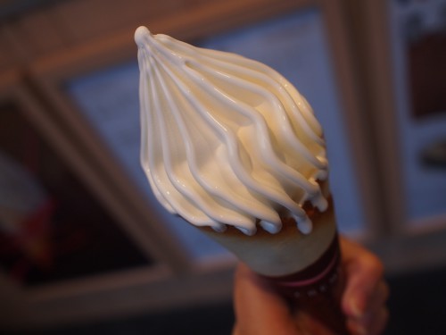 すれ違ったおじょーさん方が小さなソフトクリームを手にしてらっしゃる!