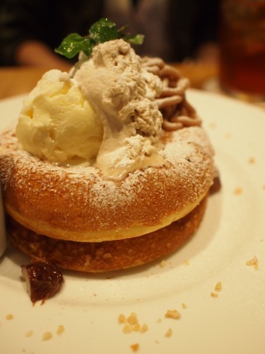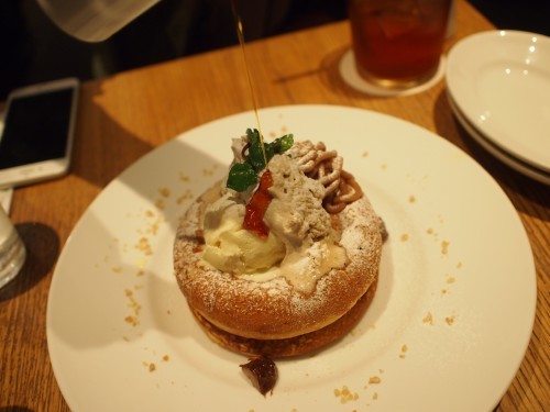 そして、モンブランとプラリネクリームのパンケーキ